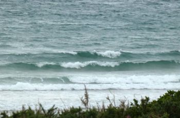 Ce matin sur le début de marée descendante des vagues de 60 à 80 cm avec un plan d’eau ridée par le vent de secteur Ouest.