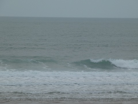 Ce matin sur le début de marée descendante des vagues de 80cm à 1 m avec un plan d’eau légèrement ridée.
