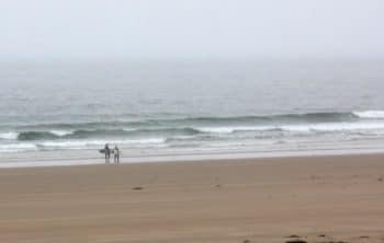 Petites vagues de 60/80 cm pas trop dégradées par le vent ce matin, bon petit surf aujourd’hui malgré le temps couvert et le crachin…