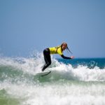 Nos deux juniors ont ouvert le bal. Arthur Flament qui sortait d’une journée de sélection pour les championnat d’Europe junior de longboard (nous y reviendrons) espérait un peu plus de vagues pour pouvoir s’exprimer mais le spot ne lui offre pas grand chose et Arthur, malgré ses efforts, n’arrive pas à “décoller”. Pour Noah Agnel d’un gabarit plus léger, c’est une série un peu frustrante car il n’arrive pas non plus à s’exprimer. Par contre les 3 autres envoient du lourd même dans ces petites vagues. Le niveau est vraiment élevé dans cette série. C’est donc déjà fini pour nos juniors. Suzanne Vol surfera plus tard dans la journée. Sur le papier, la série parait trop relevée. Le but est donc de trouver les bonnes vagues et de surfer en progression. Ce que parvient à faire Suzanne. Le temps s’écoule et Suzanne est dans le coup, il faudrait qu’elle trouve une vague correcte et score 2 manoeuvres, ce qui est largement dans ses cordes. Mais une erreur tactique sur le choix de vagues avec priorité lui fermera la porte du tour suivant. Dommage il y avait la place. La bonne nouvelle est qu’au moment du départ dimanche, Suzanne pense avoir eu un déclic. Cela marche souvent comme ça en surf et c’est aussi pour ça qu’il est important de se déplacer sur ces compets.
