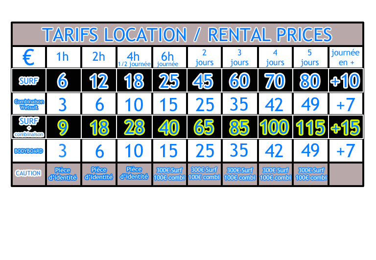 Tarifs cours et stages