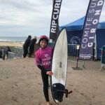 Bonjour je m’appelle Lucia, J’ai 11 ans, je suis dégoutée d’être troisième. Mais je suis quand même très contente de ma performance. Voici les quelques mots de Lucia suite à sa participation au Grom search le Week-end dernier à Lacanau. Nous aussi on est très contents de sa performance. Alors oui elle est un peu déçue de sa 3ème place car une vague a été quelque peu bizarrement notée alors qu’elle aurait pu lui faire prendre la 2ème place. C’est la compét, c’est comme ça, on connait les potentiels aléas. T’inquiète Lucia tu as encore une fois représenté le Cotentin dignement avec encore un podium sur une compétition nationale. C’est vraiment dommage que la catégorie benjamin n’existe pas au championnat de France. Elle aurait pu bien figuré et renforcer l’équipe de Normandie.