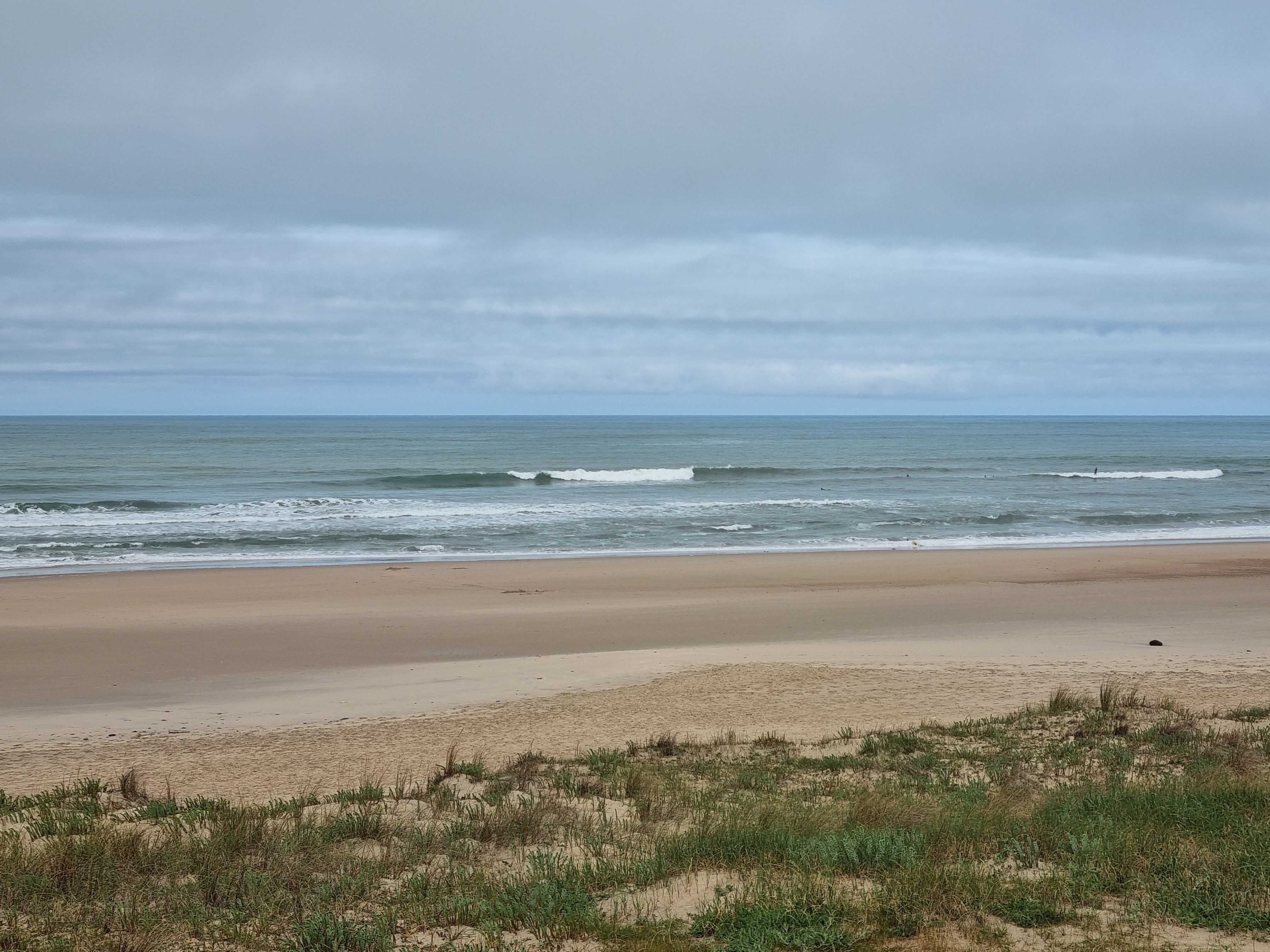 Nous nous sommes réveillés à 7 h (toujours en musique pour les filles : Crazy in Love). Puis nous avons déjeuné et sommes allés surfer à 8 h 30. Nous avons pris le temps de trouver le bon spot (Montalivet centre). Les vagues étaient bonnes, mais la barre était difficile à passer. La session a duré 1 h 30 et était intense !