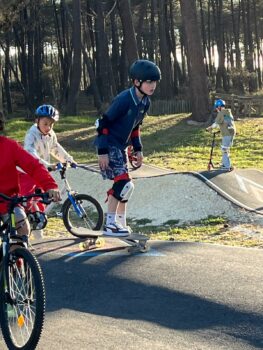 Retour à 19 h au camping (avec un gros dodo d’Alix dans le camion), pile à l’heure pour le jeu de l’apéro, que nous avons encore perdu (malgré la triche de notre brillante équipe…). Ensuite, encore un tour au pump track ! Tout le monde s’est bien amusé, et Hugo et Sandro nous ont offert de belles chutes.