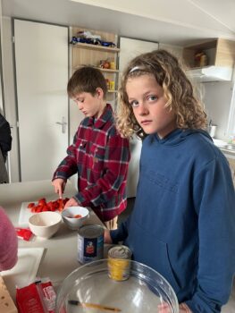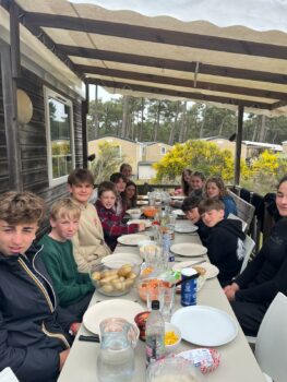 De retour au camping pour manger, nous avons préparé des salades puis mangé beaucoup de pâté (au plus grand bonheur d’Enzo et Alix), avec les restes du rougail et du camembert (spécialement pour Alice). Pour nous reposer, nous avons tous pris un temps calme avec des jeux et des siestes.