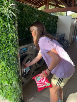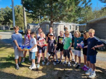 Une fois que tout le monde a fini de retrouver ses dernières affaires — surtout chez les filles, élues bungalow le plus sale de la semaine malgré quelques réprimandes à ce sujet — nous nous sommes dirigés vers la sortie du camping. Nous avons déposé les clés de nos petites maisons et avons rendu notre Gaby national à ses parents pour qu’il continue ses vacances cap vers le sud !