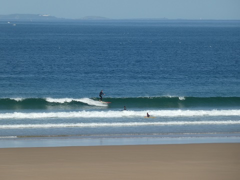 La petite houle est arrivée hier soir. Il y a donc des petites vagues propres ce matin de 60/80cm. Le vent de terre est modéré et chaud! Il devrait s’orienter au sud puis à l’ouest 10/15 noeuds. Les conditions vont donc se dégradées un peu mais cela va rester surfable. Attention beaucoup de monde attendu sur le spot. Merci de respecter la zone de bain, les zones de l’école de surf (drapeaux) et les priorités.
