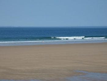 La petite houle est arrivée hier soir. Il y a donc des petites vagues propres ce matin de 60/80cm. Le vent de terre est modéré et chaud! Il devrait s’orienter au sud puis à l’ouest 10/15 noeuds. Les conditions vont donc se dégradées un peu mais cela va rester surfable. Attention beaucoup de monde attendu sur le spot. Merci de respecter la zone de bain, les zones de l’école de surf (drapeaux) et les priorités.