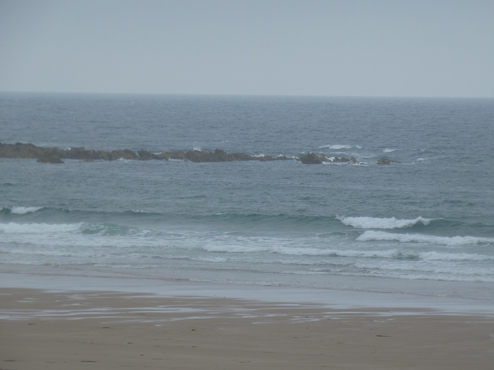 Ce matin sur la mi-marée descendante des vagues de 40 à 60 cm avec un plan d’eau agitée du au vent soutenu de secteur OSO.