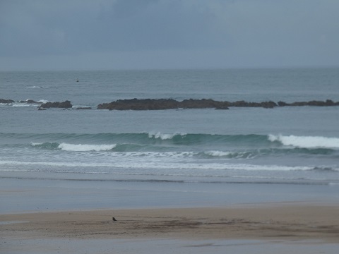 Ce matin sur la mi-marée descendante des vagues de 30 à 50 cm avec un plan d’eau presque lisse du au vent faible de secteur Ouest.